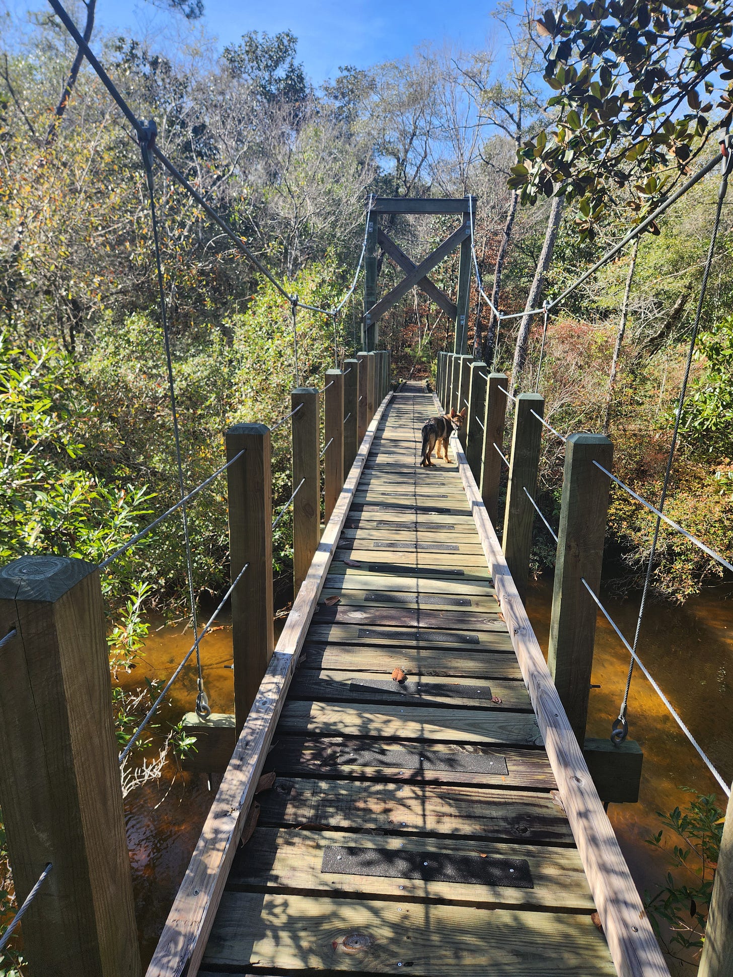 They built a bridge over Alaqua creek here a few years ago and its not easily accessible as you must walk to it on this vague trail where there are no sounds like in town, of roads or sirens, where you can imagine John Muir when he set out from Indianapolis as a botanist in 1867 the Civil War only recently settled with all its horror and turmoil and his discovery of beloved Sierras still a few years away to walk 1000 miles to the Gulf of Mexico and stopping in over night with all sorts of anonymous yet resourceful people: Americans all. He crossed from Georgia over by Savannah and made it to Cedar Key above Tampa which i have visited before but in my truck, my legs spared. This is the natural world of the South and while i am reading Imani Perry’s fascinating book about how the South’s history has always been resonant of our national soul, and yes tormented yet still viable, even as i parse thru Heather Cox Richardson’s summary of how we have come to the very precipice of the end of Democracy, i need the woods, the solace and comfort, the reminder that re-sets are possible and the world cannot always claim its dominion. There is history in the doings of men for sure but perspective in their interaction with the sublime.