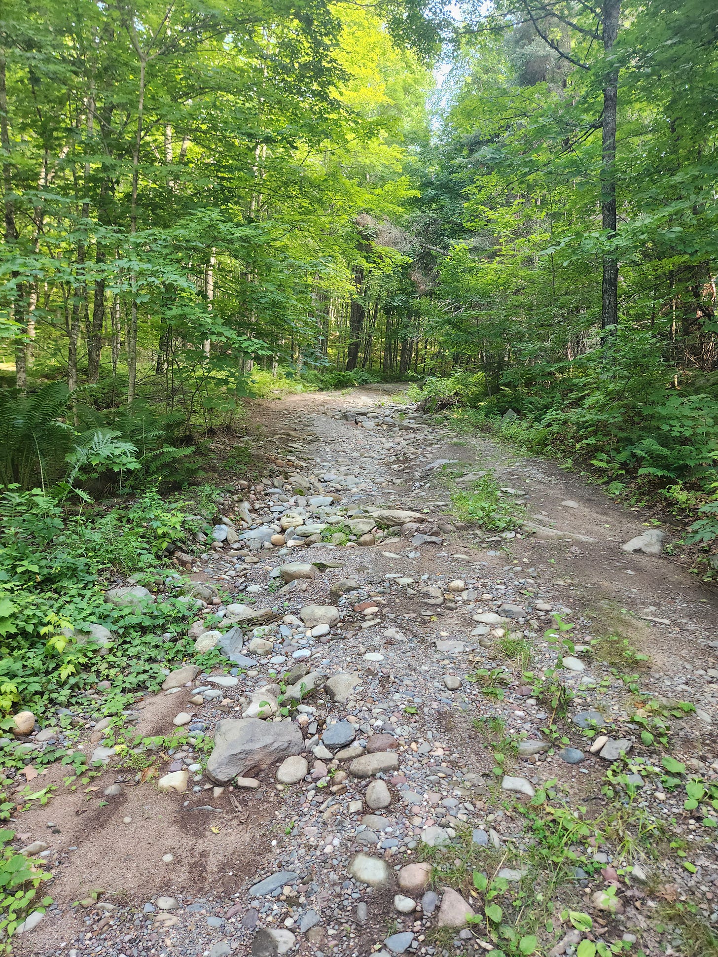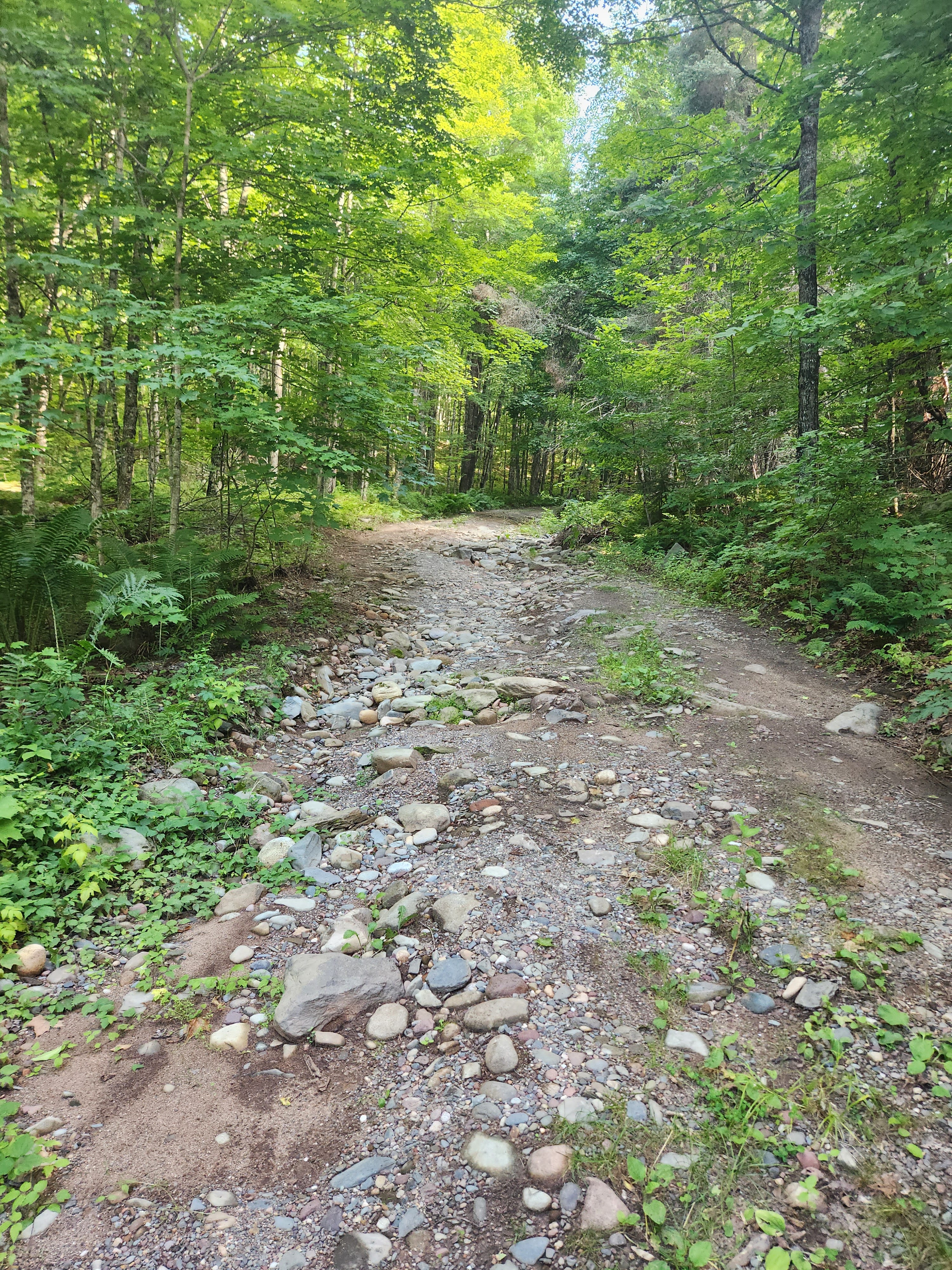 The kicker, the absolute lure of his, the guide’s description was it was accessed only by an “un-marked tote road.” Rather than try to describe in my ponderous prose that latter concept which usually means you better have decent tires and a 4x4 and tolerance for cedar and pine branches scratching the sides of your Toyota as you by-pass fallen majestic white pines blocking the way, i’ll just shoot you an image: