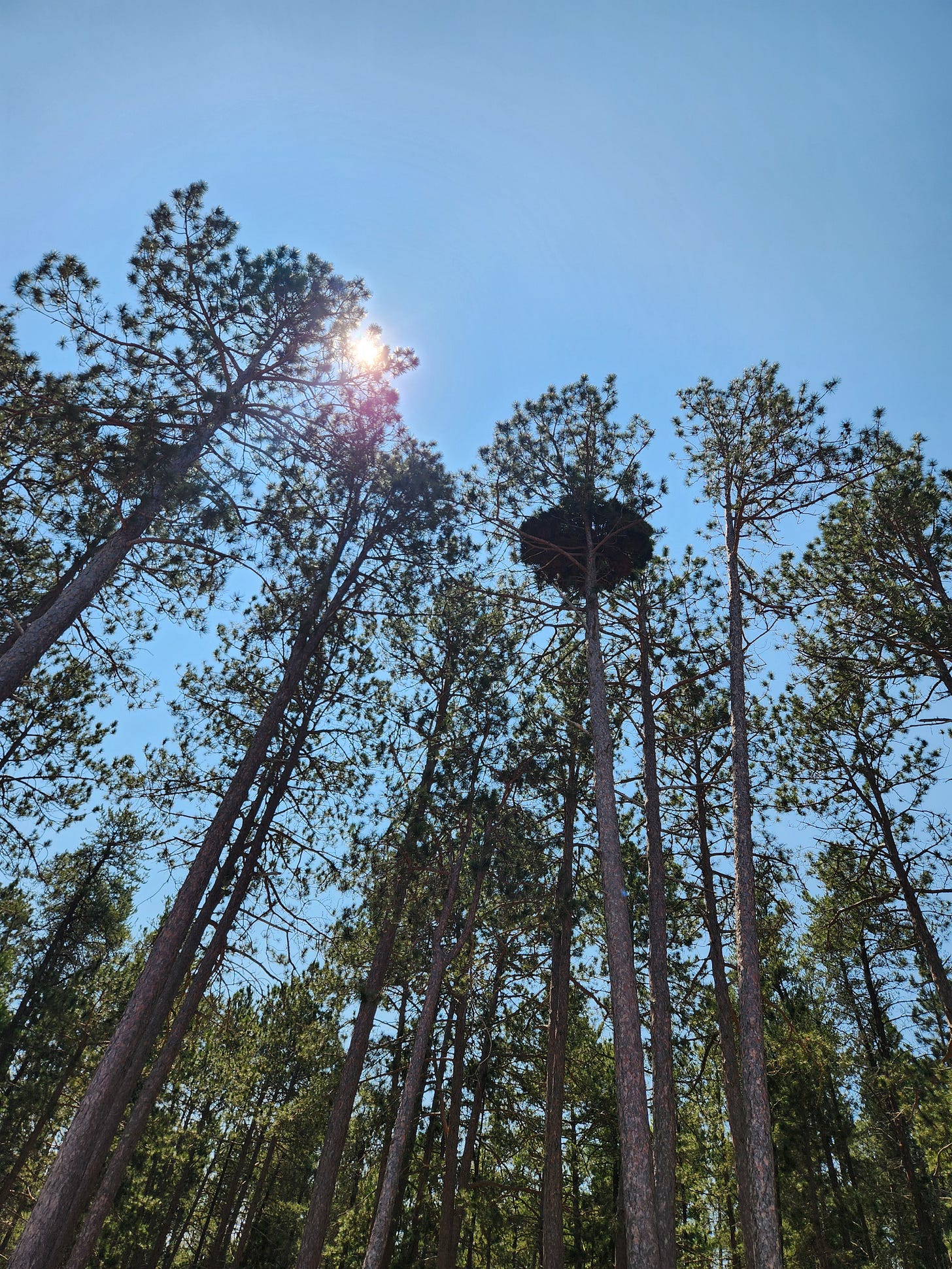 We met a guy camping in the woods and happy to tell us what fish had been running and the sounds the cranes made in the morning also warning of the Apocalypse and the nest of a bald eagle he had detected far up in a pine tree on shoreline. We parted from his gentle company and poignant story to find it. And we did.